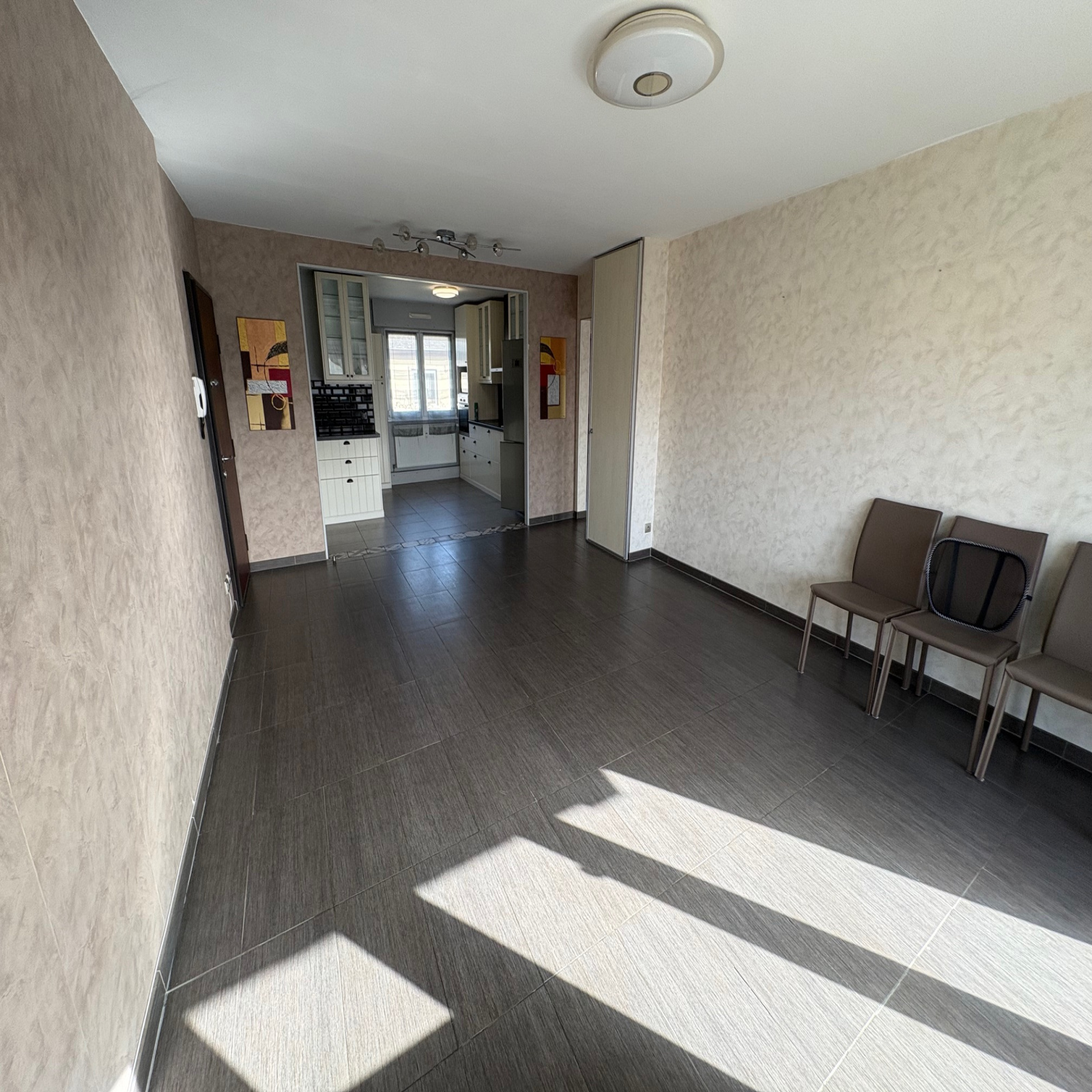 Il se compose d'une cuisine toute équipée ouverte sur le séjour de 24m², d'une loggia, de deux chambres (11 et 14m²), d'un dégagement, d'une salle d'eau avec fenêtre et d'un WC séparé.